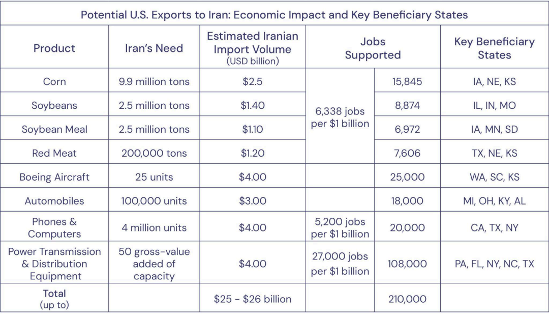 在新的、更好的协议中嵌入经济激励措施,能够在两国利益相关者中打造出一个庞大的既得利益群体。在美国,授权每年向航空、农业和汽车制造行业出口250亿美元,预计将创造出约20万个就业岗位,涵盖华盛顿州的航空航天工人、中西部地区的农民以及锈带地区的汽车零部件制造商。在伊朗,航空公司、农民和工厂的新业务将带来切实的效益。