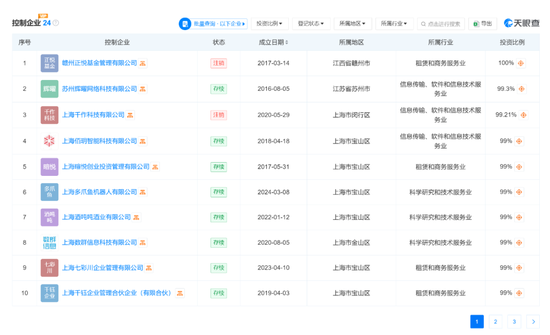上海仟崇注册资本10万元,实缴资本不详,参保人数为0;佰玥智能注册资本5000万元,实缴资本不详,参保人数为0;上海暄悦注册资本3000万元,实缴资本1520万元,参保人数12人;上海七彩川注册资本100万元,实缴资本不详,参保人数为0。