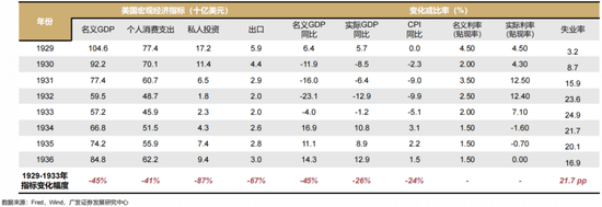美国大萧条期间(1929-1933年),美国的经济数据全面崩盘: